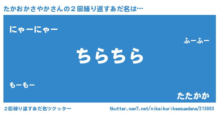 | 意味不明あだ名 | 『とにかく怪しいたかおかさやか』 |