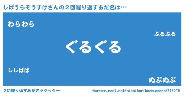 | 意味不明あだ名 | 『永久保存しばうらそうすけ』 |