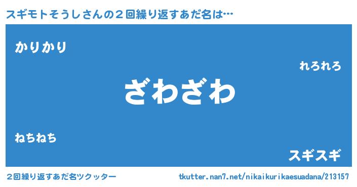 | 意味不明あだ名 | 『住所不定無職スギモトそうし(43歳)』 |
