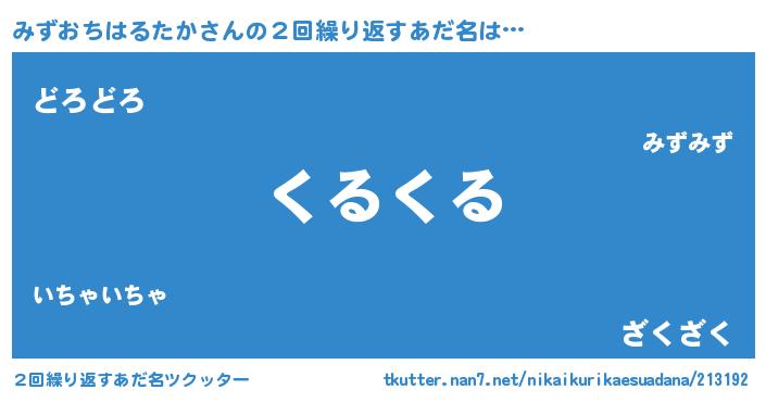 | ヘコむあだ名 | 『みずおちはるたか(遠い目)』『みずにゅー』 |