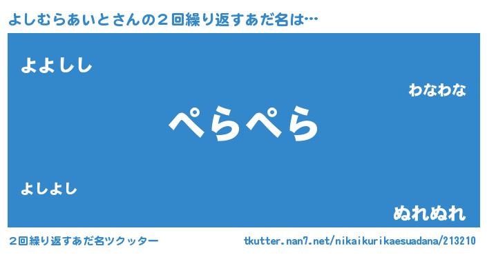 | 男性向けラノベタイトル風あだ名 | 『ノーゲーム・ノーヨシムラアイト』 |