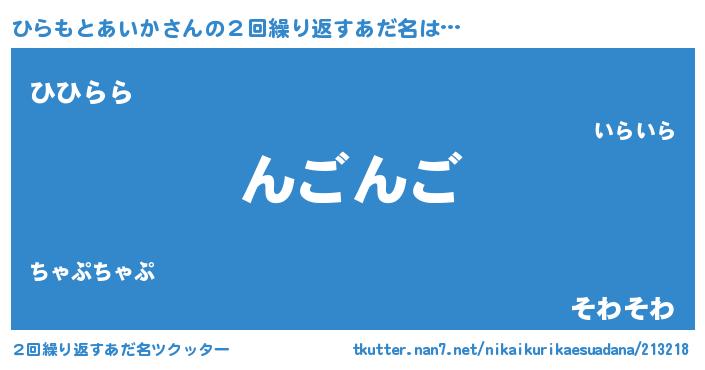 | 意味不明あだ名 | 『ヨモギ科ひらもとあいか属』 |