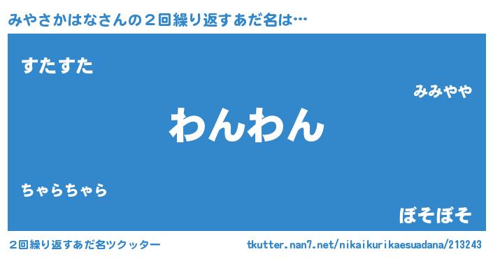 | 肩書あだ名 | 『みやさかはな上級大将』 |