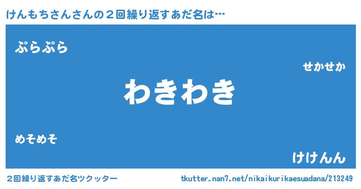 | 男性向けラノベタイトル風あだ名 | 『転生したらけんもちさんだった件』 |