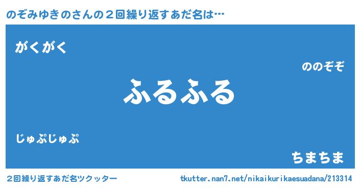 | ヘコむあだ名 | 『のぞみゆきの(笑)』『つくし』 |
