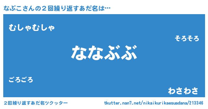 | 意味不明あだ名 | 『なぶこフォーエバー』『自称なぶこ』 |