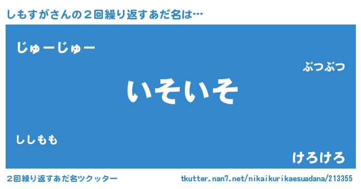 | 意味不明あだ名 | 『とにかく怪しいしもすが』 |