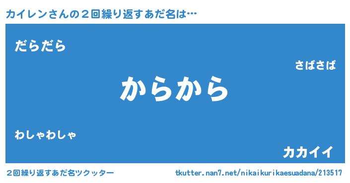 | ヘコむあだ名 | 『カイレン(笑)』『牛乳』『カイにー』 |