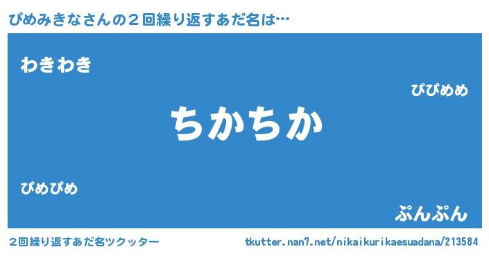 | 欧米人風あだ名 | 『ぴめみきな・ステッグマイヤー』 |