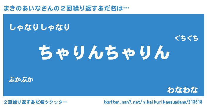 | ヘコむあだ名 | 『まきのあいな(遠い目)』『牛乳』 |