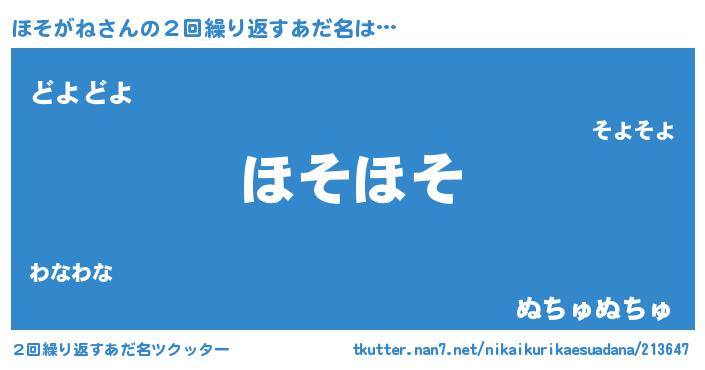 | 意味不明あだ名 | 『ペロリンほそがね』『永久保存ほそがね』 |