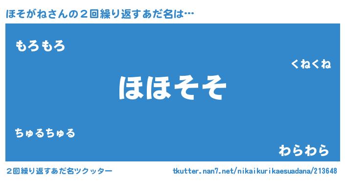 | 意味不明あだ名 | 『ほそがねフォーエバー』『自称ほそがね』 |