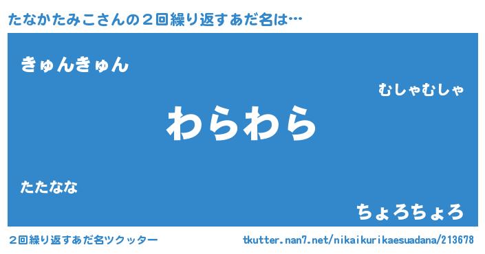 | 可愛いあだ名 | 『たなぷりん』『たなかたみこママ』 |