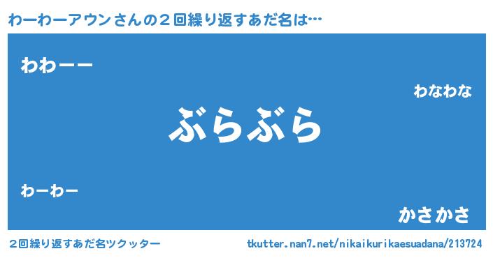 | 自動車の名前っぽいあだ名 | 『フィッワ』『ワクア』『デミワ』 |