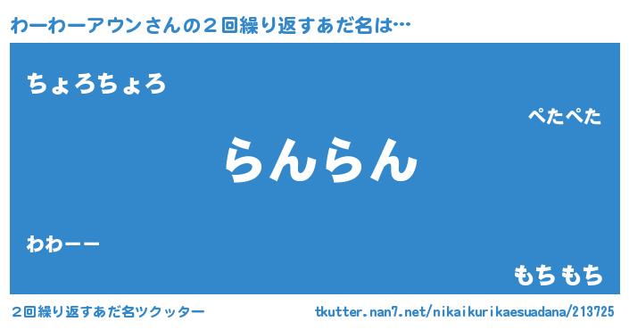 | 欧米人風あだ名 | 『トリンドルわーわーアウン』 |