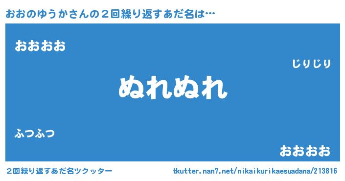 | 欧米人風あだ名 | 『ウサインおおのゆうか』 |