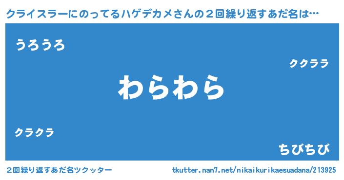 | 意味不明あだ名 | 『ニラ科クライスラーにのってるハゲデカメ属』 |