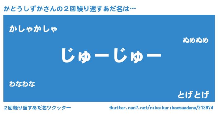 | 意味不明あだ名 | 『住所不定無職かとうしずか(93歳)』 |