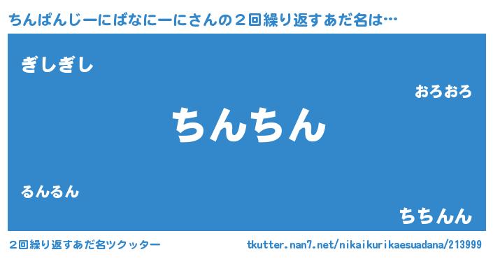 | 欧米人風あだ名 | 『マイケルちんぱんじーにばなにーに』 |