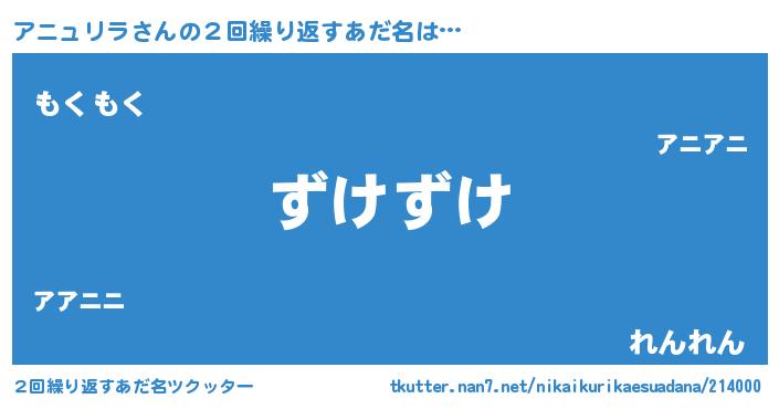| 意味不明あだ名 | 『住所不定無職アニュリラ(8歳)』 |
