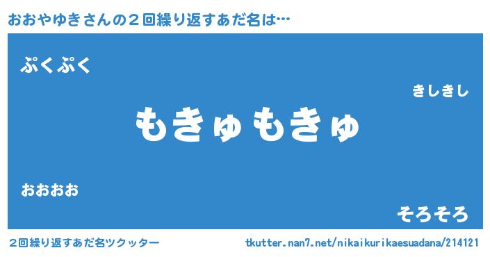 | 男性向けラノベタイトル風あだ名 | 『Re:おおやゆきから始める異世界生活』 |