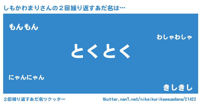 | 意味不明あだ名 | 『自称しもかわまり』 |