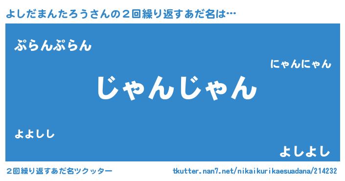 | ヘコむあだ名 | 『よしにー』『よしお』『豆乳』 |