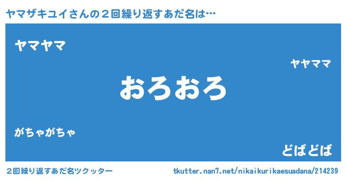 | 欧米人風あだ名 | 『ウサインヤマザキユイ』 |