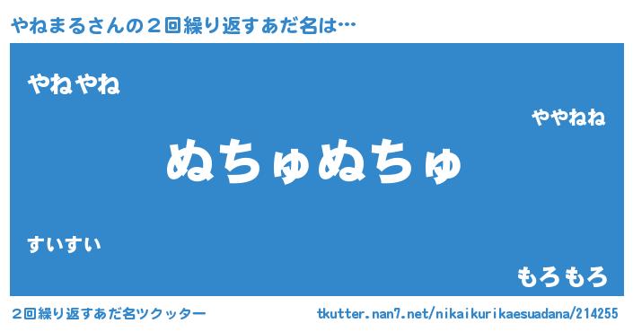 | 男性向けラノベタイトル風あだ名 | 『やねまるの嫁は女の子じゃないと思った?』 |