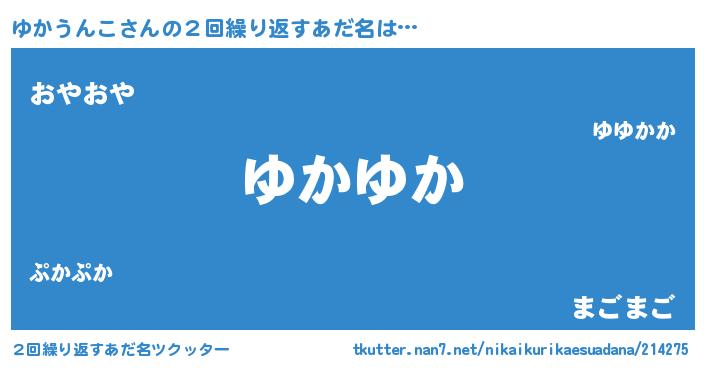 | ポケモン風あだ名 | 『ユカチュウ』『ヒユカウンコ』 |