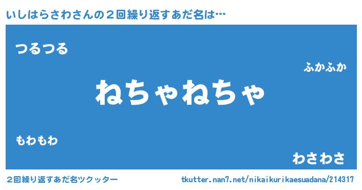 | ヘコむあだ名 | 『いしお』『いしっふぃ~』『つくし』 |
