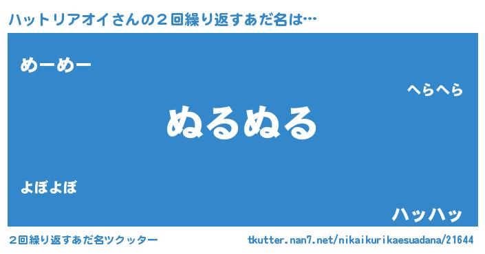 | 男性向けラノベタイトル風あだ名 | 『ハットリアオイの嫁は女の子じゃないと思った?』 |
