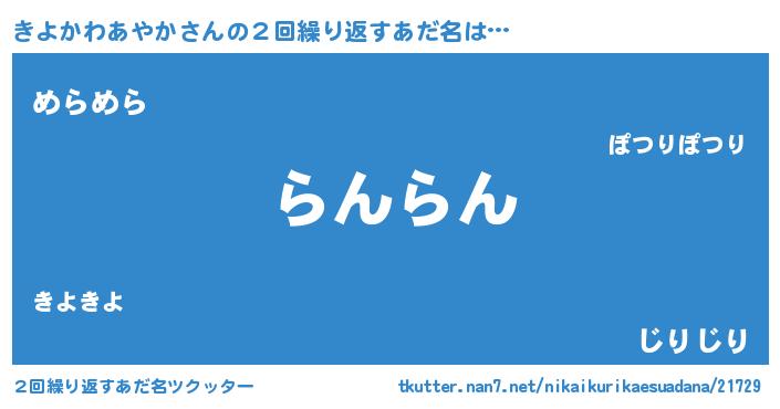 | 料理風あだ名 | 『きよかわあやかごはん』 |
