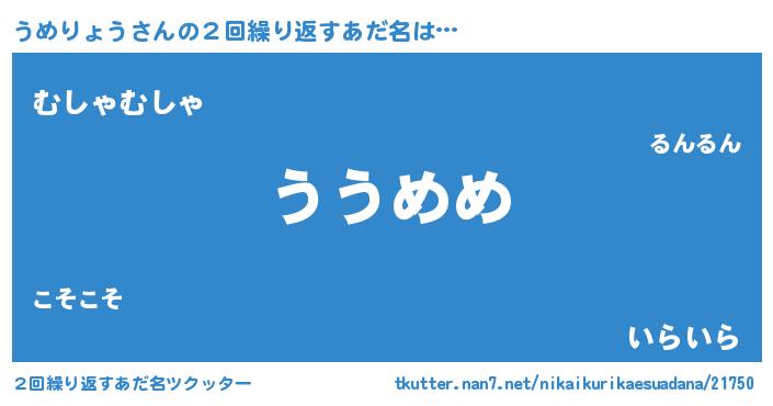 | 意味不明あだ名 | 『うめりょうフォーエバー』 |