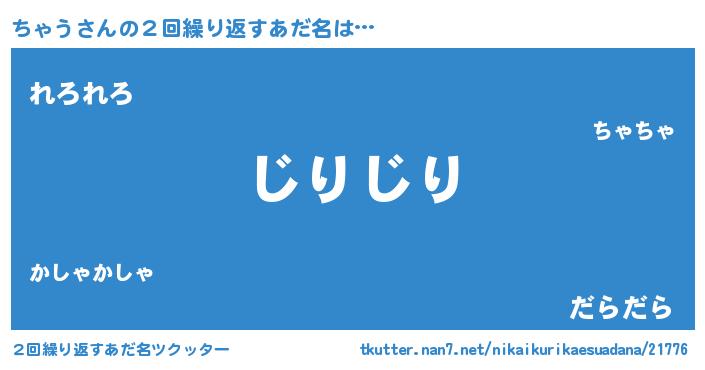 | 男性向けラノベタイトル風あだ名 | 『この素晴らしい世界にちゃうを!』 |