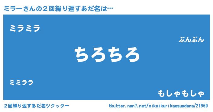 | ヒーロー風カッコイイあだ名 | 『スーパーミラー』『最強戦士ミラー』 |