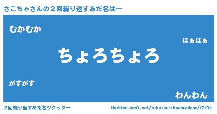 | 意味不明あだ名 | 『自称さこちゃ』『エリンギ科さこちゃ属』 |