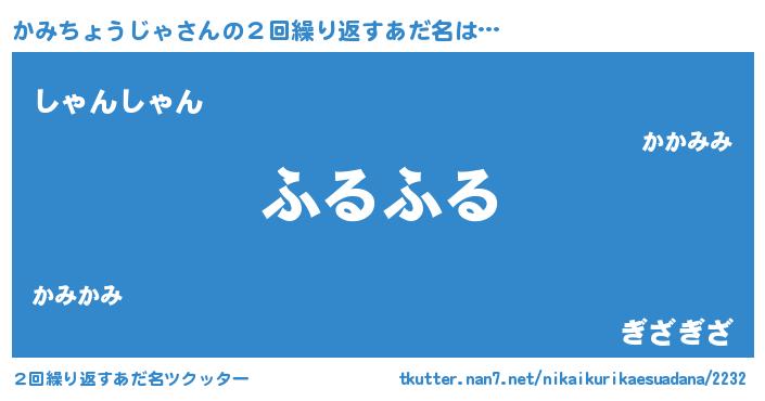 | 肩書あだ名 | 『かみちょうじゃ助手』 |