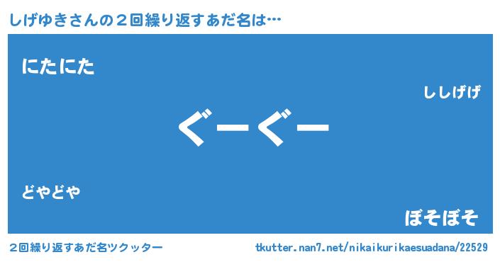 | 意味不明あだ名 | 『永久保存しげゆき』『ペロリンしげゆき』 |