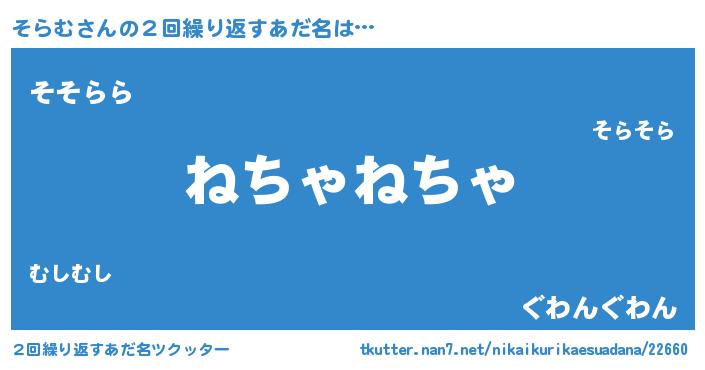| 男性向けラノベタイトル風あだ名 | 『そらむの嫁は女の子じゃないと思った?』 |