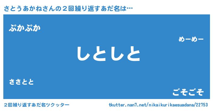 | 意味不明あだ名 | 『住所不定無職さとうあかね(71歳)』 |