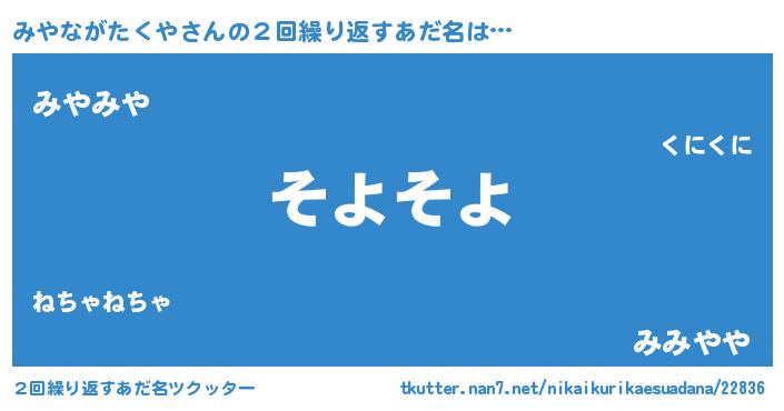 | ヘコむあだ名 | 『みやにゅー』『酢こんぶ』『みやお』 |