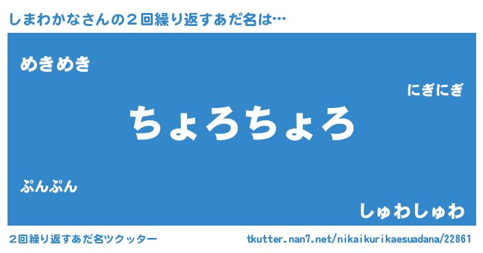 | 意味不明あだ名 | 『自称しまわかな』 |