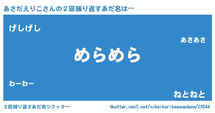 | ヘコむあだ名 | 『あさだえりこ(笑)』『あさを』 |