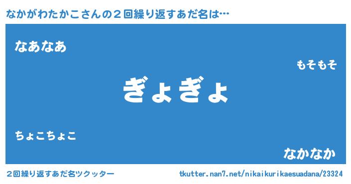 | 意味不明あだ名 | 『永久保存なかがわたかこ』 |