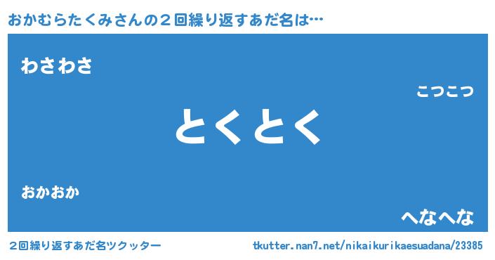 | ヘコむあだ名 | 『おかむらたくみ(笑)』『おかにゅー』 |
