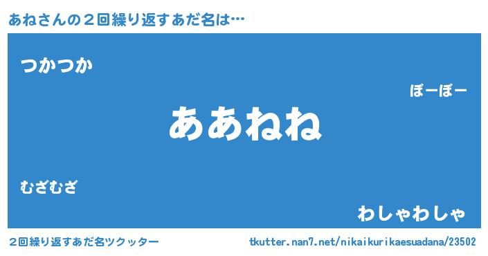 | ヘコむあだ名 | 『つくし』『あね太郎』 |
