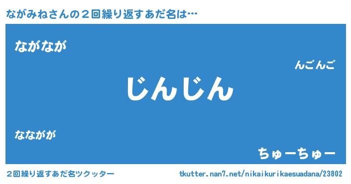 | 男性向けラノベタイトル風あだ名 | 『この素晴らしい世界にながみねを!』 |