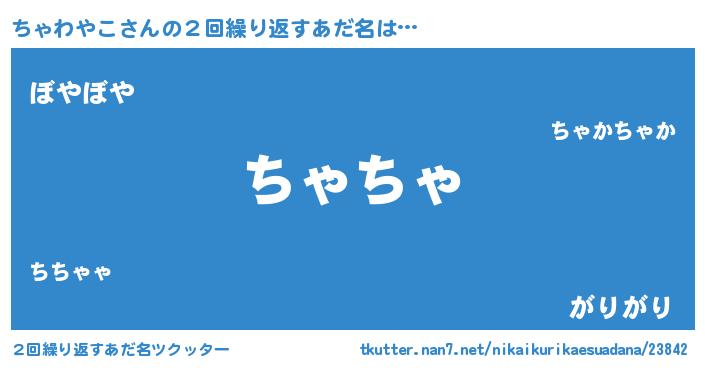 | ヘコむあだ名 | 『ちゃにゅー』『ちゃわやこ(遠い目)』 |