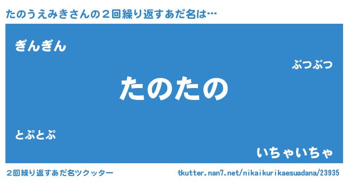 | ヘコむあだ名 | 『たのにゅー』『たのうえみき(爆)』 |
